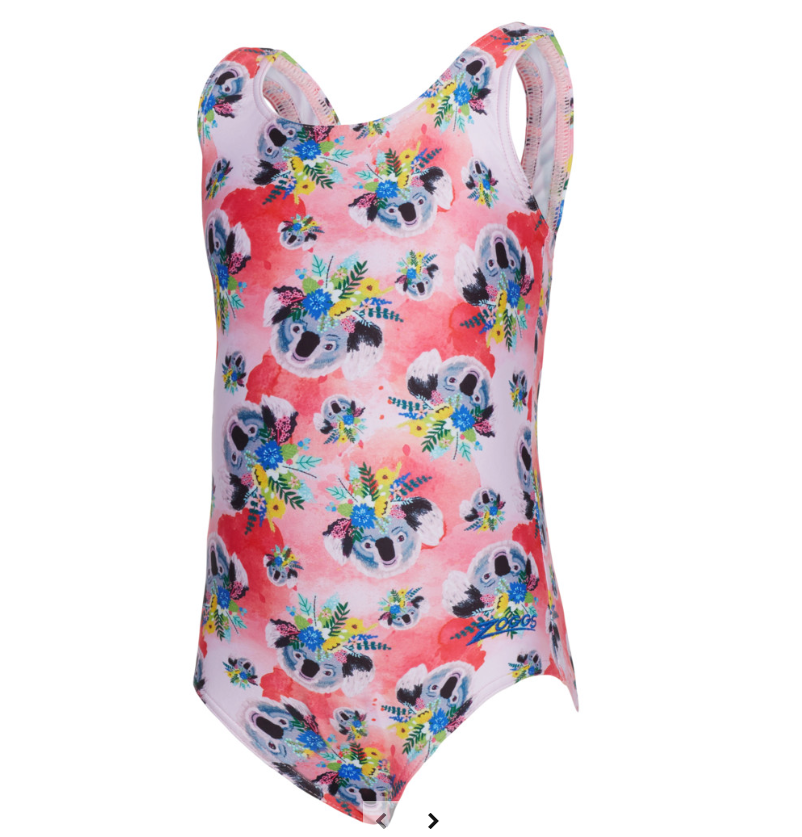 Zoggs Girls Koala Print Scoopback Swimsuit