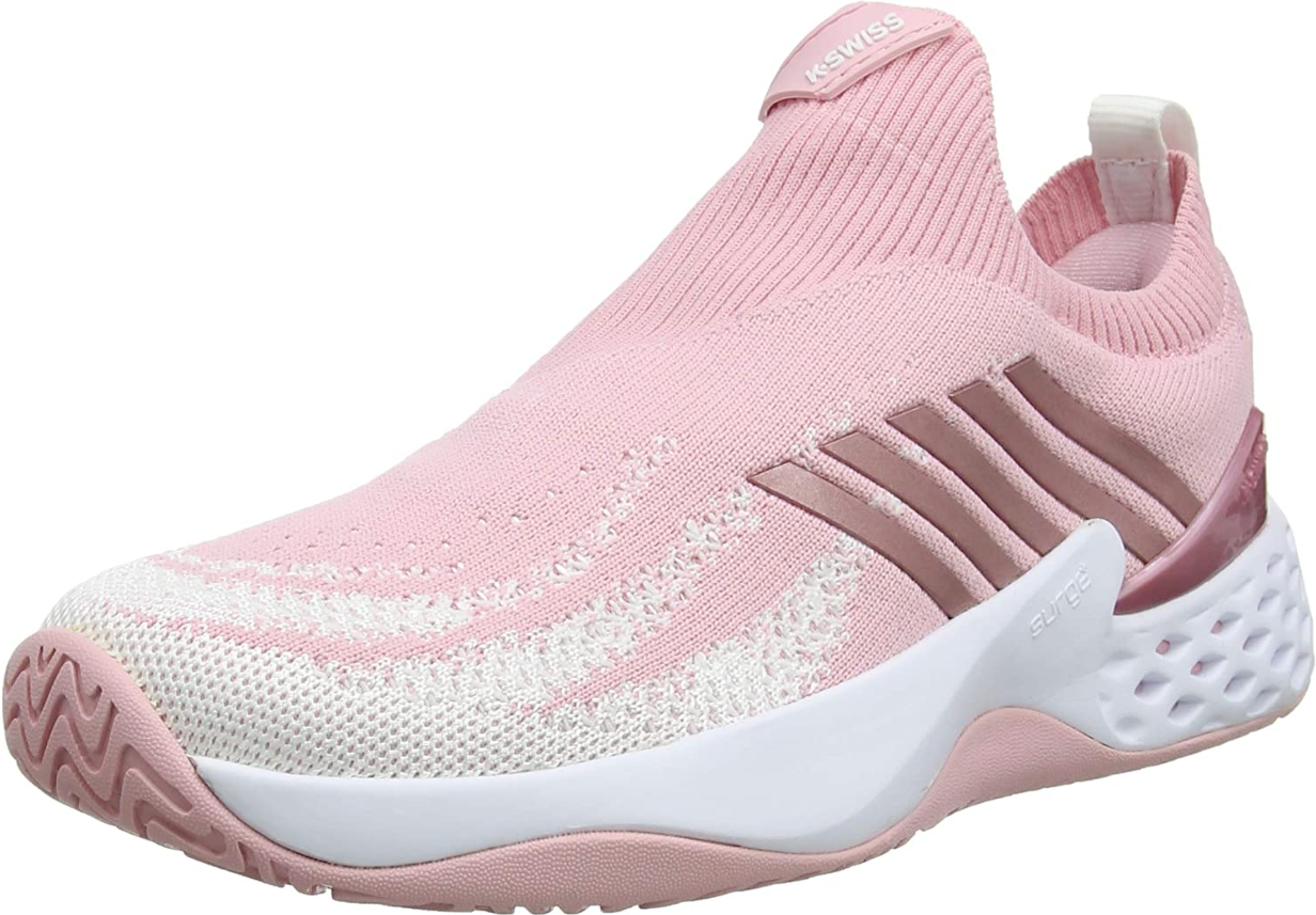 The new Aero Knit is the lightest high-end shoe in K-Swiss history and combines the very best in design and performance. The shoe features an aerody- namic upper with hidden laces and Infi-Knit technology providing protection and support. The Aero Knit also incorporates Surge technology for optimal cushioning and energy return, perfect for a competitive junior or adult player looking for a lightweight, comfortable shoe.